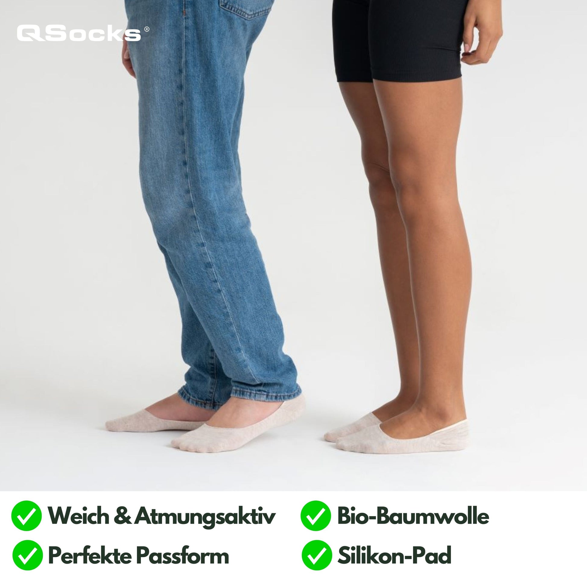 Unsere Ballerina no show Socken im Medium-Cut-Design bieten den perfekten Mix aus Komfort und Stil. Hergestellt aus gekämmter Bio-Baumwolle, überzeugen sie durch ihre weiche Haptik und langlebige Qualität. Die atmungsaktive Verarbeitung sorgt dafür, dass deine Füße den ganzen Tag frisch und angenehm bleiben – ideal für den Einsatz in eleganten Schuhen oder Sneakern.