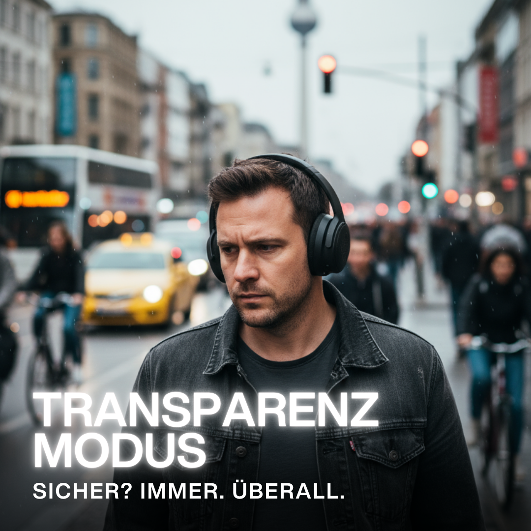 Transparenzmodus für bewusste Wahrnehmung Ihrer Umgebung + Multipoint-Funktion für gleichzeitige Verbindung mit zwei Geräten – ideal für Alltag und Multitasking. -